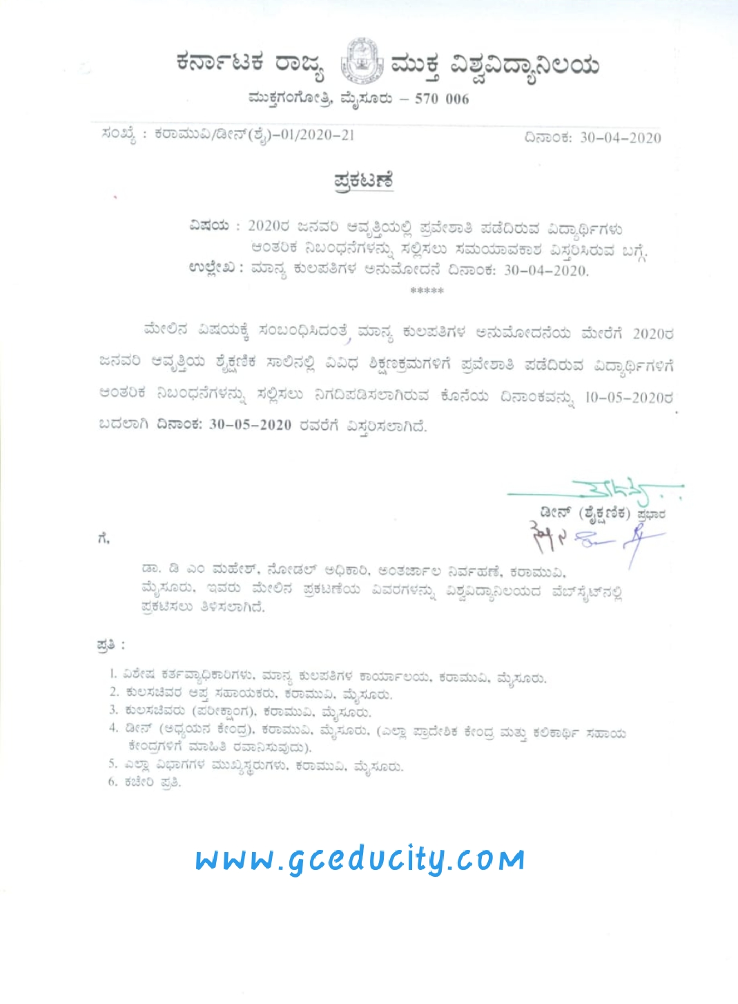 KSOU has also issued circular for admission for MBA courses for 2020. KSOU has conducted CET for the admission of MBA course. students can check the results in the following results section. those who are got eligibility in CET can take admission for MBA courses within 29/02/2020.